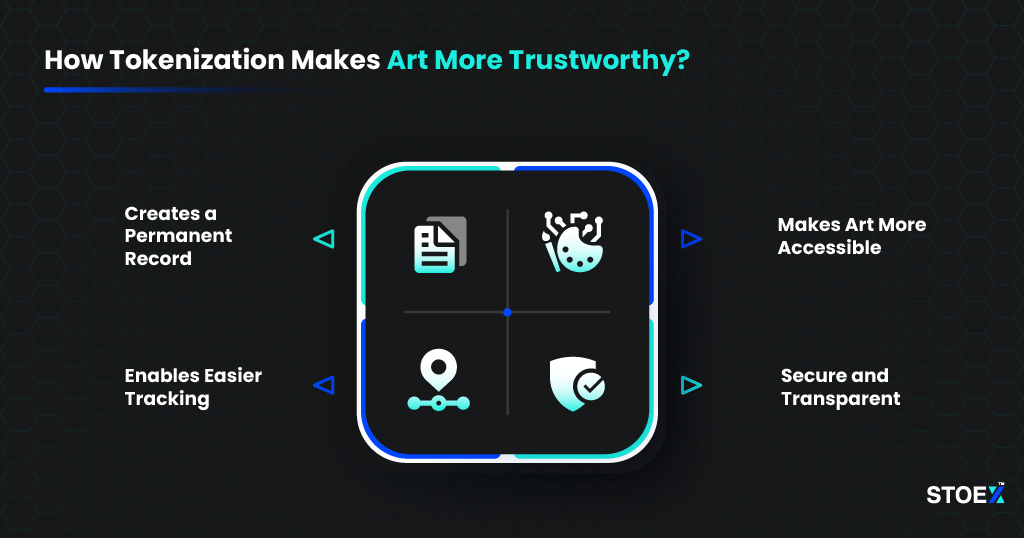 Blockchain in tokenized arts provides a secure and transparent environment, establishing trust among the stakeholders.