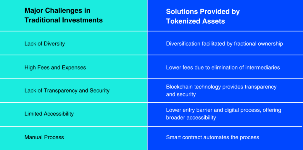 - Solutions provided by the tokenized assets to the challenges of traditional investments.