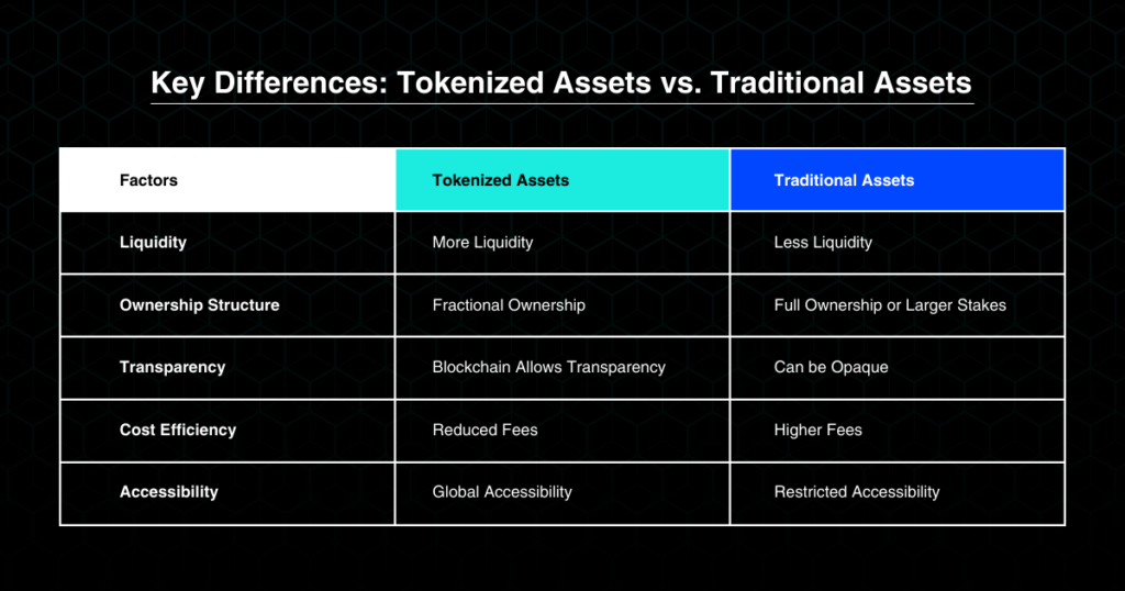Tokenized Assets: They do not require intermediaries like brokers and lawyers, reducing the fees. Also, smart contracts streamline the investment process.